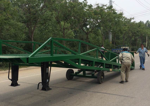 移動式登車橋與叉車配合使用的貨物裝卸輔助設備,可根據(jù)汽車車廂的高低調(diào)節(jié)高度,叉車可以直接通過本設備駛?cè)胲噹麅?nèi)部進行貨物的批量裝卸,僅需單人作業(yè),即可實現(xiàn)貨物的快速裝卸。它使企業(yè)減少大量勞力,提高工作效率,獲取更大經(jīng)濟效益。