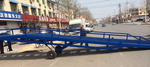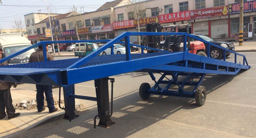 移動式登車橋與叉車配合使用的貨物裝卸輔助設備,可根據(jù)汽車車廂的高低調(diào)節(jié)高度,叉車可以直接通過本設備駛入車廂內(nèi)部進行貨物的批量裝卸,僅需單人作業(yè),即可實現(xiàn)貨物的快速裝卸。它使企業(yè)減少大量勞力,提高工作效率,獲取更大經(jīng)濟效益。